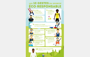 Ayez les bons réflexes à adopter pour pratiquer du sport tout en préservant l’environnement et limitant son impact sur la planète, il suffit d'adopter quelques gestes simples mais efficaces que nous vous invitons à suivre via le visuel suivant :